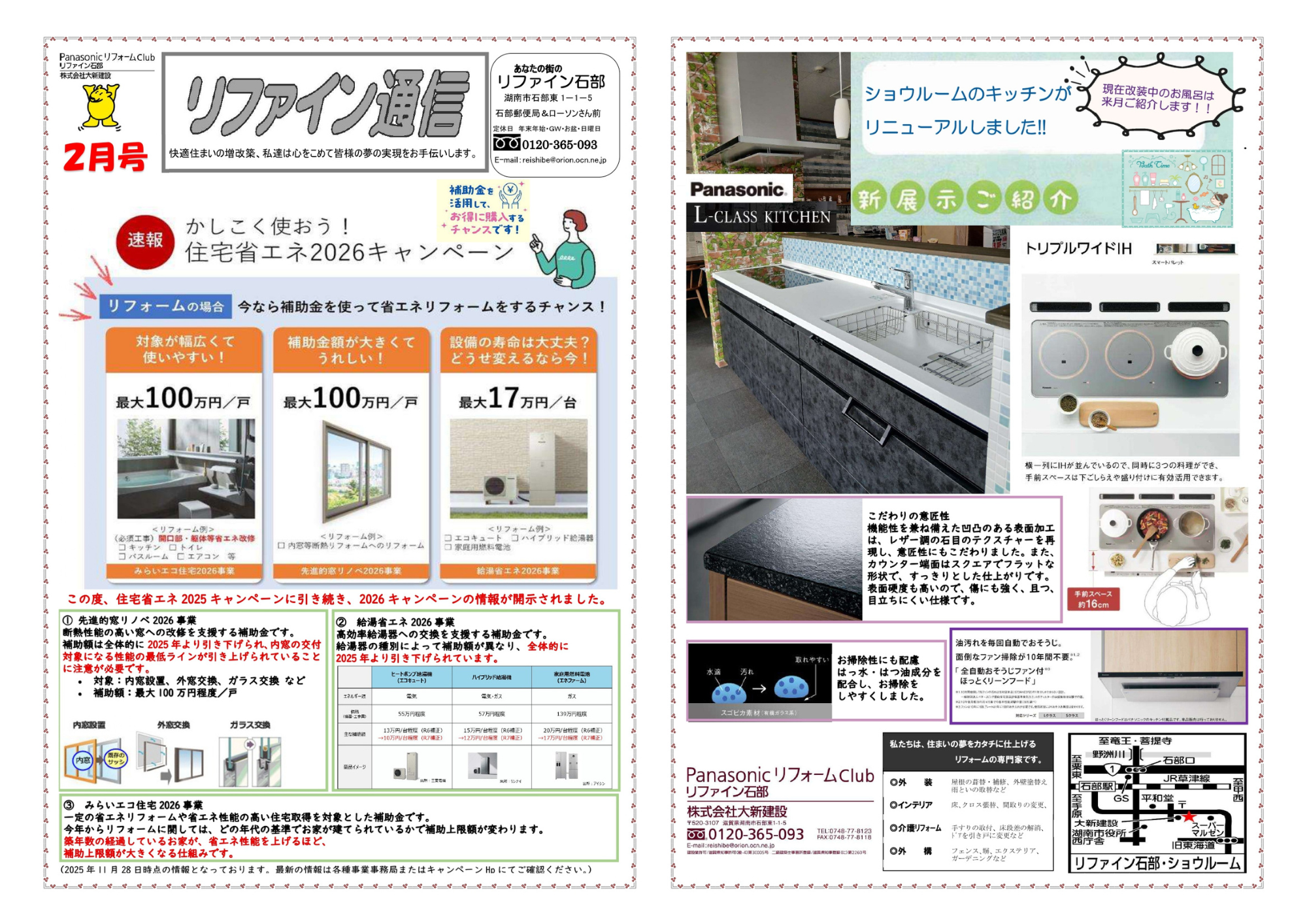日時: 2025年10月25日(土)・26日(日) 場所: パナソニックリフォーム リファイン石部 (株式会社大新建設) 滋賀県湖南市石部東1丁目1番5号